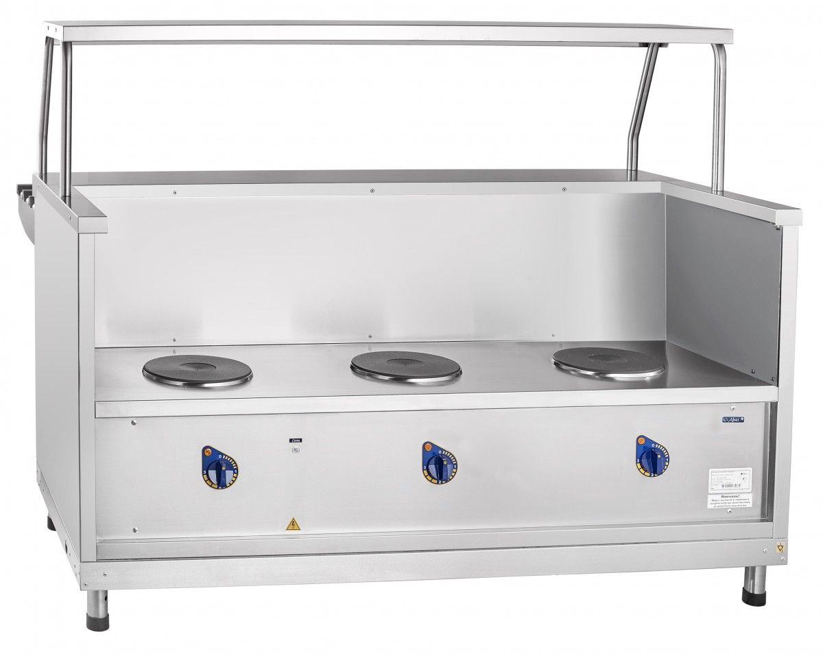 Прилавок мармит электрический для первых блюд Abat Аста ПМЭС-70КМ-01 предназначен для кратковременного хранения в горячем состоянии первых блюд в наплитных котлах и раздачи их потребителю на предприятиях общественного питания самостоятельно или в составе технологических линий
