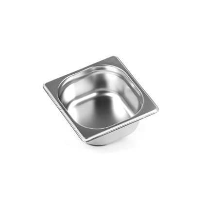 Гастроёмкость из нержавеющей стали используется на кухне для хранения, транспортировки, приготовления и подачи различных продуктов и блюд. Они бывают сплошные и перфорированные. В гастроемкостях из нержавеющей стали можно жарить, тушить, запекать, готовить на пару, варить, томить и т.д. Геометрия гастроёмкостей позволяет их вкладывать в друг друга (штабелировать), что значительным образом экономит место при их хранении без продукции внутри. Гастроёмкости имеют стандартные для своего типоразмера и изготавливается в соответствии с Единым европейским стандартом гастрономических ёмкостей для приготовления, хранения и транспортировки пищи (Стандарт GN-Gastronorm EN-631-1). Система маркировки представляет собой дробный индекс, ёмкости с обозначением 1/1 имеют размер 530х325 мм, остальные размеры дробятся в соответствующих обозначениям пропорциях: 2/1, 1/2, 1/3, 2/3, 1/4, 2/4, 1/6, 1/9, 1/12. Глубины гастроёмкостей также унифицированы: 20, 40, 65, 100, 150 и 200 мм. Гастроёмкости экологичны и гигиеничны при использовании - они выполнены из нержавеющей стали AISI 202 толщиной 0,8 мм, которая имеет высокую термостойкость и сохраняет свои свойства в диапазоне температур от –40 до +250 °С. Нержавеющая сталь и её легирующие компоненты инертны по отношению к пищевым продуктам, что позволяет сохранять вкусовые качества приготавливаемых или хранящихся в них продуктов и блюд. Гастроёмкости легко очищаются за счет скругленных углов и дезинфицируются (подходят для мытья в посудомоечных машинах), а также устойчивы к воздействию абразивных чистящих средств. Дополнительно к гастроёмкостям можно приобрести крышки, которые защищают продукты или готовые блюда от заветривания при хранении. Крышки с силиконовыми уплотнителями предохранят продукты от просыпания или проливания при транспортировке.