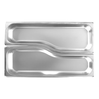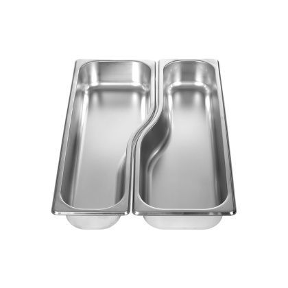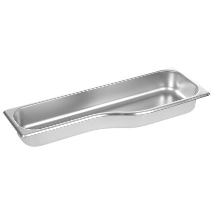 Гастроёмкость из нержавеющей стали используется на кухне для хранения, транспортировки, приготовления и подачи различных продуктов и блюд. Они бывают сплошные и перфорированные. В гастроемкостях из нержавеющей стали можно жарить, тушить, запекать, готовить на пару, варить, томить и т.д. Геометрия гастроёмкостей позволяет их вкладывать в друг друга (штабелировать), что значительным образом экономит место при их хранении без продукции внутри. Гастроёмкости имеют стандартные для своего типоразмера и изготавливается в соответствии с Единым европейским стандартом гастрономических ёмкостей для приготовления, хранения и транспортировки пищи (Стандарт GN-Gastronorm EN-631-1). Система маркировки представляет собой дробный индекс, ёмкости с обозначением 1/1 имеют размер 530х325 мм, остальные размеры дробятся в соответствующих обозначениям пропорциях: 2/1, 1/2, 1/3, 2/3, 1/4, 2/4, 1/6, 1/9, 1/12. Глубины гастроёмкостей также унифицированы: 20, 40, 65, 100, 150 и 200 мм. Гастроёмкости экологичны и гигиеничны при использовании - они выполнены из нержавеющей стали AISI 202 толщиной 0,8 мм, которая имеет высокую термостойкость и сохраняет свои свойства в диапазоне температур от –40 до +250 °С. Нержавеющая сталь и её легирующие компоненты инертны по отношению к пищевым продуктам, что позволяет сохранять вкусовые качества приготавливаемых или хранящихся в них продуктов и блюд. Гастроёмкости легко очищаются за счет скругленных углов и дезинфицируются (подходят для мытья в посудомоечных машинах), а также устойчивы к воздействию абразивных чистящих средств. Дополнительно к гастроёмкостям можно приобрести крышки, которые защищают продукты или готовые блюда от заветривания при хранении. Крышки с силиконовыми уплотнителями предохранят продукты от просыпания или проливания при транспортировке.