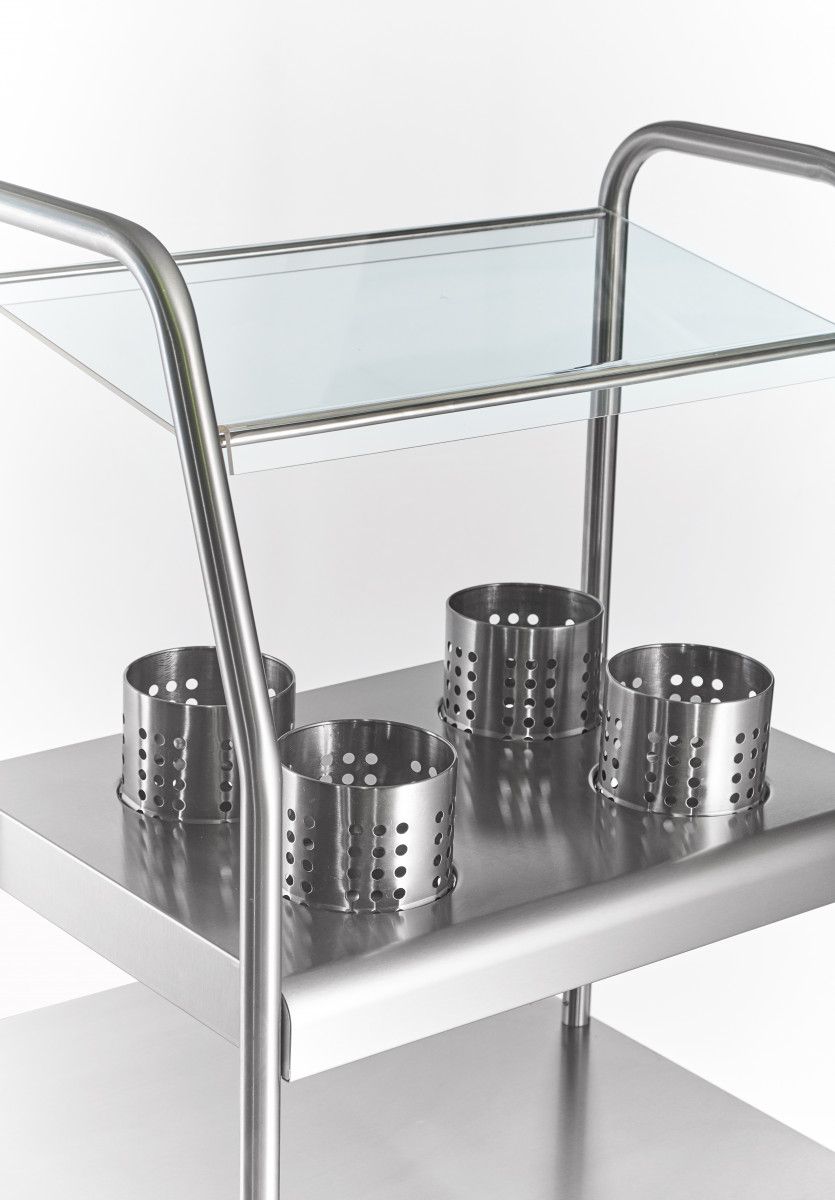 Прилавок для столовых приборов и подносов ПСПХ-70КМ с хлебницей предназначен для раздачи потребителям столовых приборов и подносов, а также хлеба.