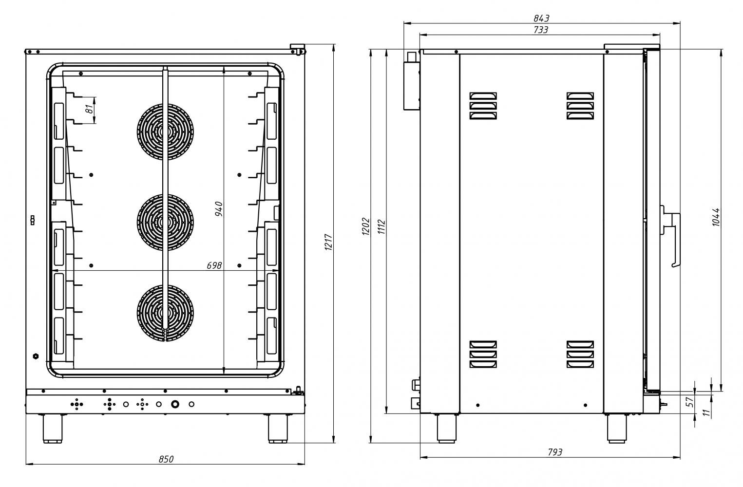 - 3 вентилятора с реверсом для лучшего качества приготовления