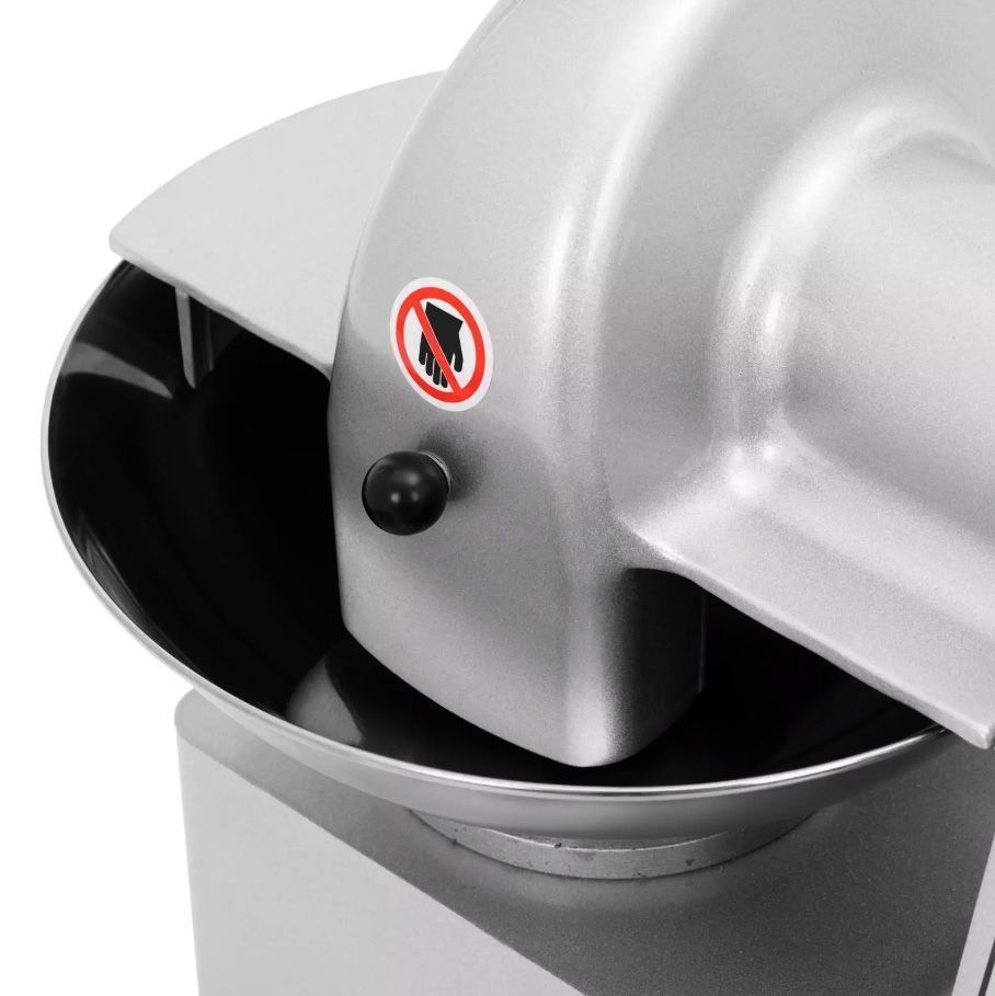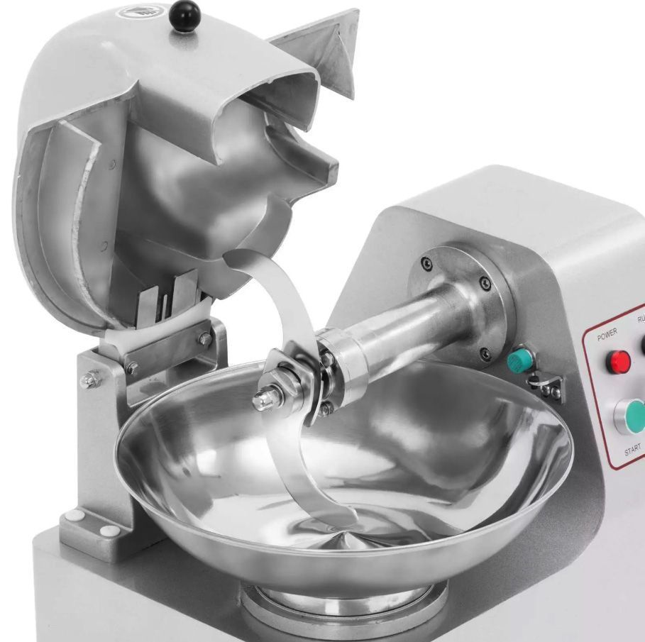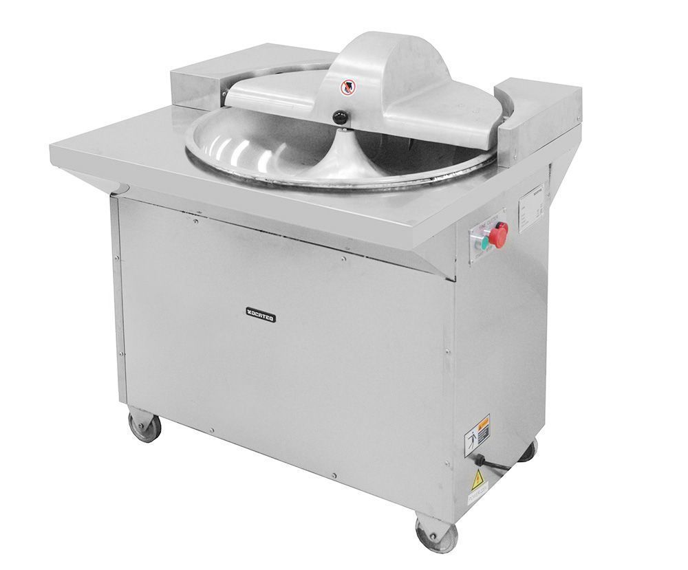 Продукт загружается в чашу из нержавеющей стали AISI 201, вращающуюся в горизонтальной плоскости перпендикулярно плоскости вращения 2-х лопастного серповидного ножа из нержавеющей стали AISI 201.