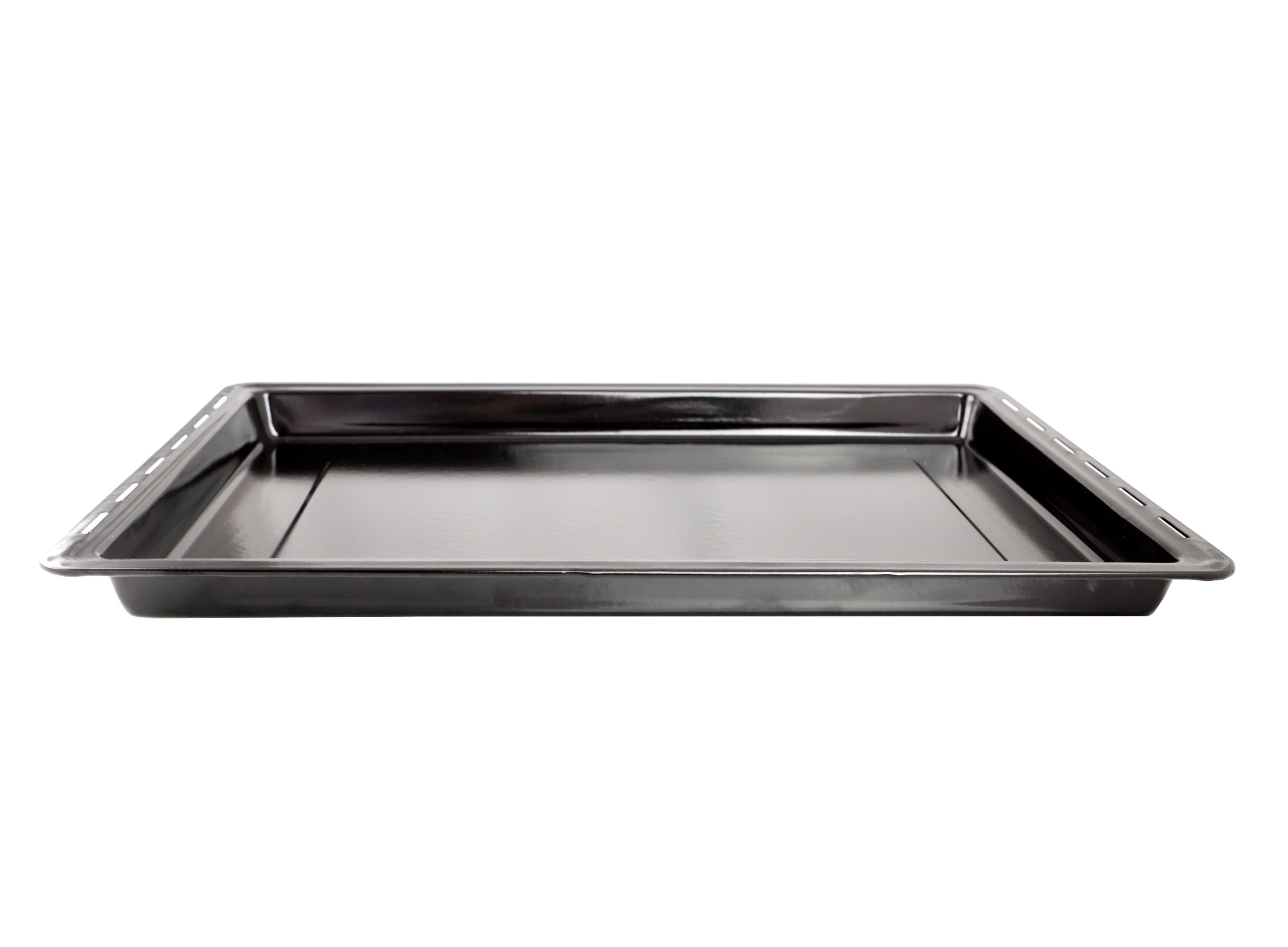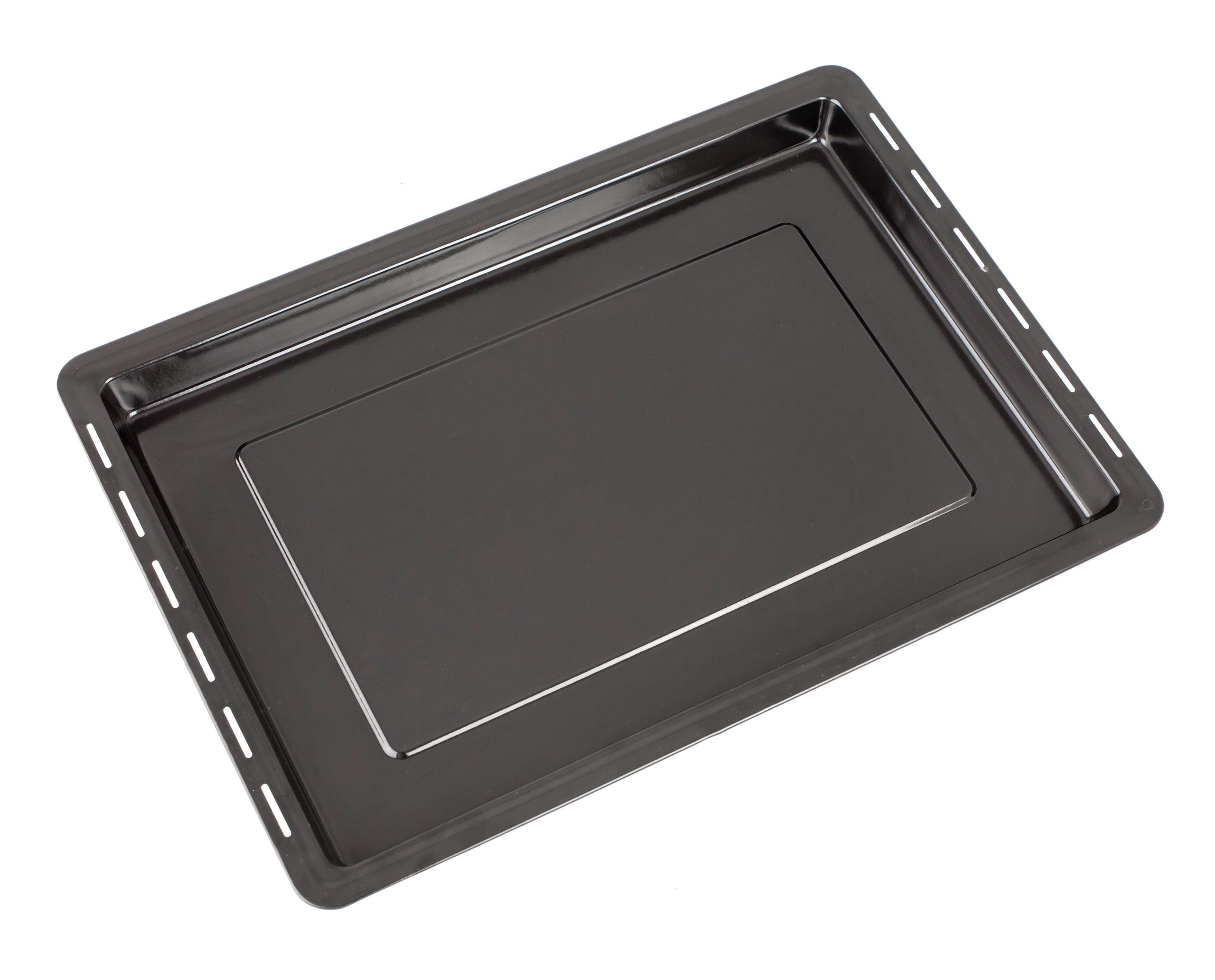 Эмалированный противень - это классическая посуда для кухни, предназначенная для жарки и запекания блюд из мяса и рыбы, выпечки хлеба, пиццы, пирожков, печенья и т.п. Прямоугольный металлический противень изготовлен из углеродистой стали со стекловидным эмалевым покрытием. Современная эмаль очень прочна, устойчива к воздействию солей, кислот и щелочей, которые содержатся в пище, в такой посуде можно готовить и хранить любые блюда. Для того, чтобы эмалированные товары для кухни служили долго, их не следует подвергать механическим воздействиям, с осторожностью пользоваться металлической кухонной утварью (ложками, лопатками, скребками), не мыть жесткими металлическими щетками и абразивными чистящими средствами. Внешние размеры стального противня 490х350 мм, размеры дна 430х300 см, высота бортика 30 мм. В бортиках имеются прорези для более равномерной циркуляции воздуха в камере печи.