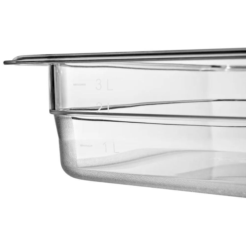 Гастроемкость GN 1/2 глубиной 65 мм, торговая марка RESTOLA. Изделие может использоваться на предприятиях общественного питания для хранения, замораживания и разогревания пищи, а также в кейтеринговых компаниях для транспортировки готовой еды. Предназначена для использования в температурном диапазоне от -40°С до +100°С. Гастроемкости можно мыть в посудомоечной машине при температуре до +95°С, используя любое моющее средство. Изготовлена из поликарбоната, цвет прозрачный, углы и дно корпуса имеют шершавую структуру, что повышает износостойкость при эксплуатации. Есть мерная шкала. Размеры производимых гастроемкостей являются унифицированными в соответствии со стандартом Gastronorm и позволяют использовать их совместно с современным кухонным оборудованием и инвентарем.