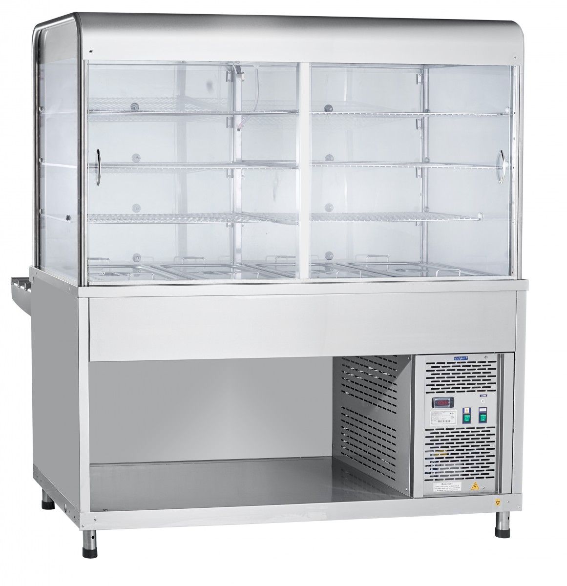 Прилавок-витрина Abat Аста ПВВ(Н)-70КМ-С-03-НШ предназначен для кратковременного хранения, демонстрации и раздачи холодных закусок и третьих блюд.