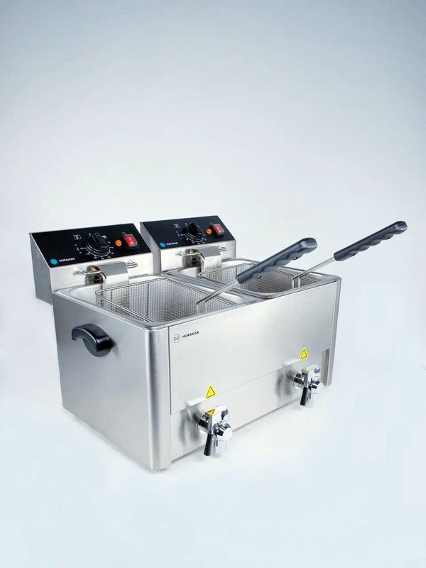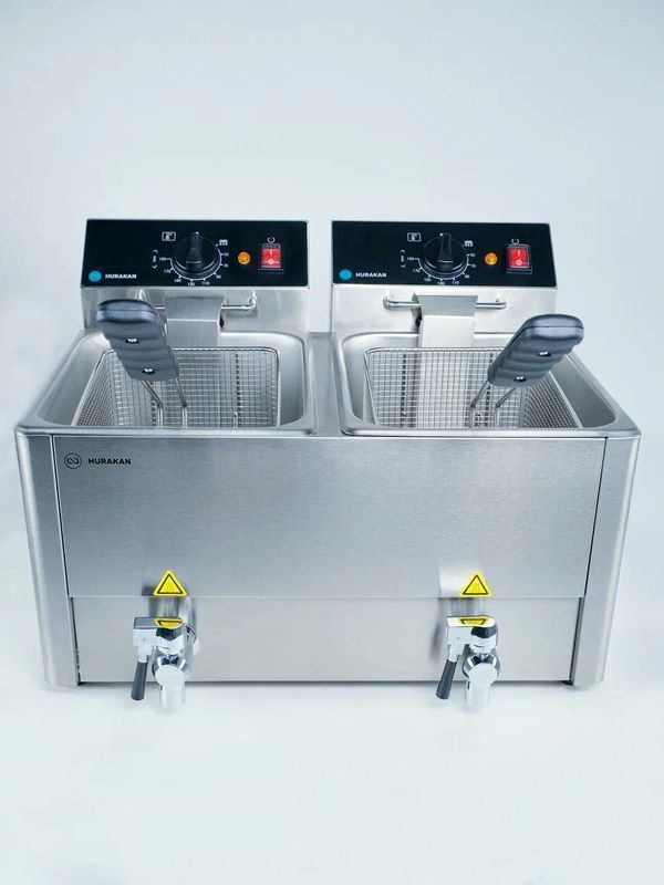 Профессиональная фритюрница HURAKAN HKN-FT88N предназначена для обжаривания продуктов, таких как картофель, мясо, рыба, овощи и фрукты в кляре, в разогретом до определенной температуры растительном или животном масле.