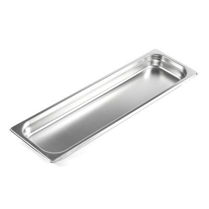 Гастроёмкость из нержавеющей стали используется на кухне для хранения, транспортировки, приготовления и подачи различных продуктов и блюд. Они бывают сплошные и перфорированные. В гастроемкостях из нержавеющей стали можно жарить, тушить, запекать, готовить на пару, варить, томить и т.д. Геометрия гастроёмкостей позволяет их вкладывать в друг друга (штабелировать), что значительным образом экономит место при их хранении без продукции внутри. Гастроёмкости имеют стандартные для своего типоразмера и изготавливается в соответствии с Единым европейским стандартом гастрономических ёмкостей для приготовления, хранения и транспортировки пищи (Стандарт GN-Gastronorm EN-631-1). Система маркировки представляет собой дробный индекс, ёмкости с обозначением 1/1 имеют размер 530х325 мм, остальные размеры дробятся в соответствующих обозначениям пропорциях: 2/1, 1/2, 1/3, 2/3, 1/4, 2/4, 1/6, 1/9, 1/12. Глубины гастроёмкостей также унифицированы: 20, 40, 65, 100, 150 и 200 мм. Гастроёмкости экологичны и гигиеничны при использовании - они выполнены из нержавеющей стали AISI 202 толщиной 0,8 мм, которая имеет высокую термостойкость и сохраняет свои свойства в диапазоне температур от –40 до +250 °С. Нержавеющая сталь и её легирующие компоненты инертны по отношению к пищевым продуктам, что позволяет сохранять вкусовые качества приготавливаемых или хранящихся в них продуктов и блюд. Гастроёмкости легко очищаются за счет скругленных углов и дезинфицируются (подходят для мытья в посудомоечных машинах), а также устойчивы к воздействию абразивных чистящих средств. Дополнительно к гастроёмкостям можно приобрести крышки, которые защищают продукты или готовые блюда от заветривания при хранении. Крышки с силиконовыми уплотнителями предохранят продукты от просыпания или проливания при транспортировке.