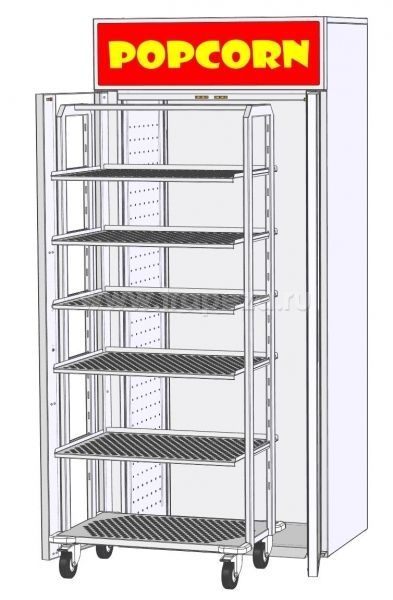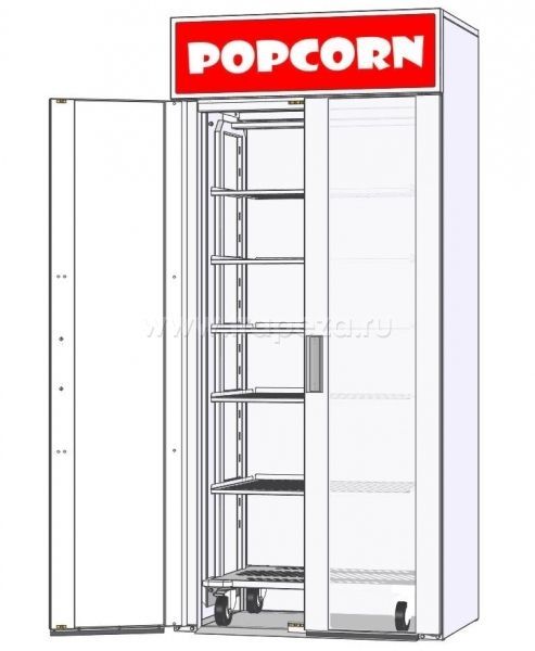 - Полки можно установливать как горизонтально для попкорна, так и под наклоном для лотков с чипсами начос
