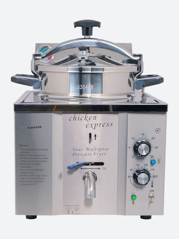 Профессиональная фритюрница HKN-EPF16 предназначена для обжаривания продуктов, таких как картофель, мясо, рыба, овощи и фрукты в кляре, в разогретом до определенной температуры растительном или животном масле. Продукт, приготовленный во фритюрнице под давлением более нежный, сочный и имеет более насыщенный вкус.
