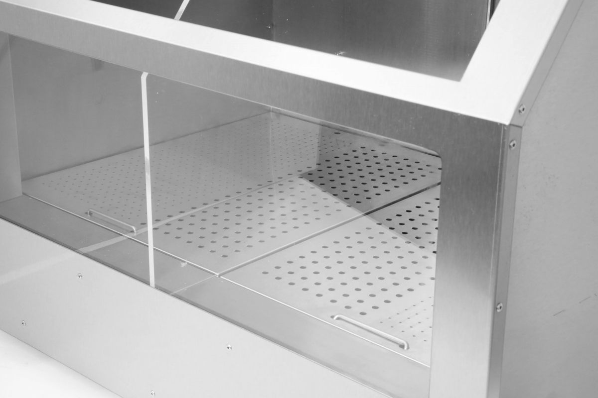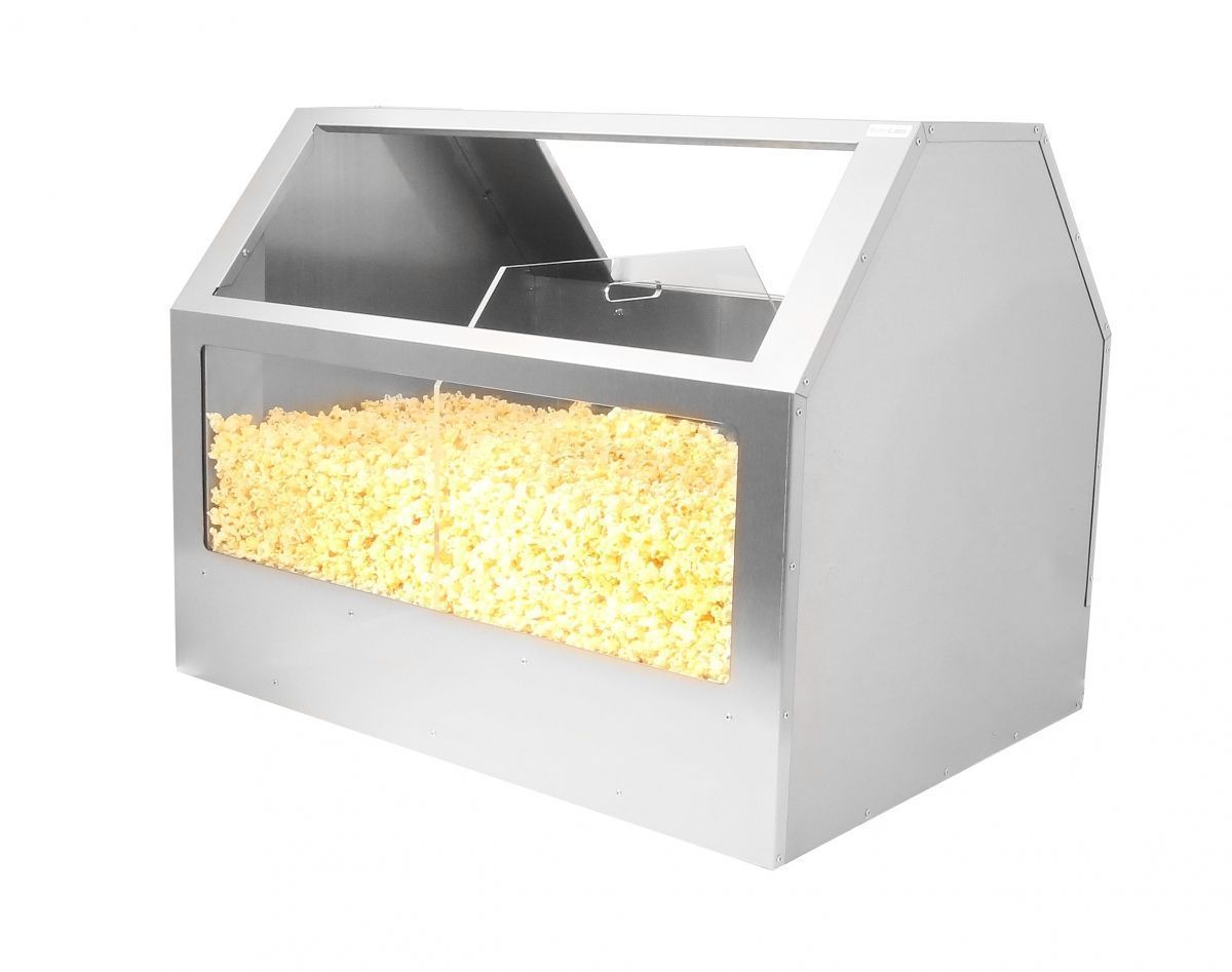 Витрина для попкорна напольная насыпная ТТМ VTP2-090K2 двухсекционная с подогревом, открытая с подсветкой и перегородкой. Витрина оснащена светодиодной подсветкой. Объем разделен на две секции прозрачной перегородкой. Спереди прозрачное стекло, со стороны оператора дверка для загрузки попкорна. Лоток для шелухи и панель управления расположены с противоположной стороны от клиентской зоны (открытая часть витрины). Регулировка температуры +30/+85C.