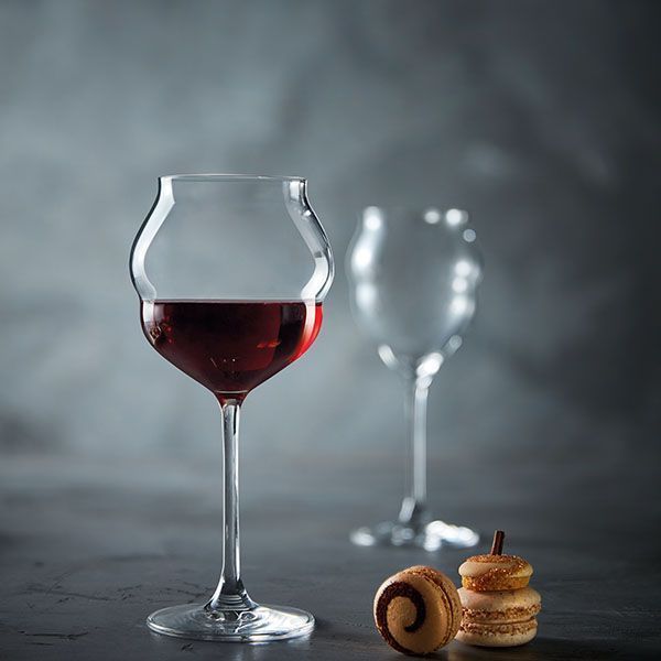 Инновации в дизайне. Коллекция Macaron своим «вкусным» названием и необычным силуэтом создает образ удовольствия от идеального сочетания еды и вина. Смелые округлые формы служат одной цели — еще больше раскрыть свойства и качества вина: двойная чаша создает двойную игру открытия и закрытия бокала. Что касается элегантного, удивительной формы бокала для шампанского, который и не фужер, и не бокал, а нечто среднее, он спроектирован так, чтобы еще больше раскрывать ароматы игристых вин и соблазнить вас их энологической дегустацией.