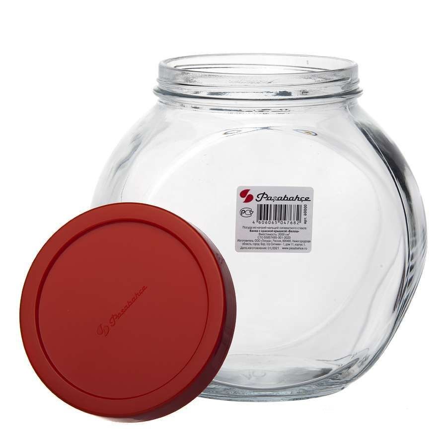 Банка с крышкой "Бэлла"; стекло,пластик; 1500мл; прозр.,красный Pasabahce 80000/b |