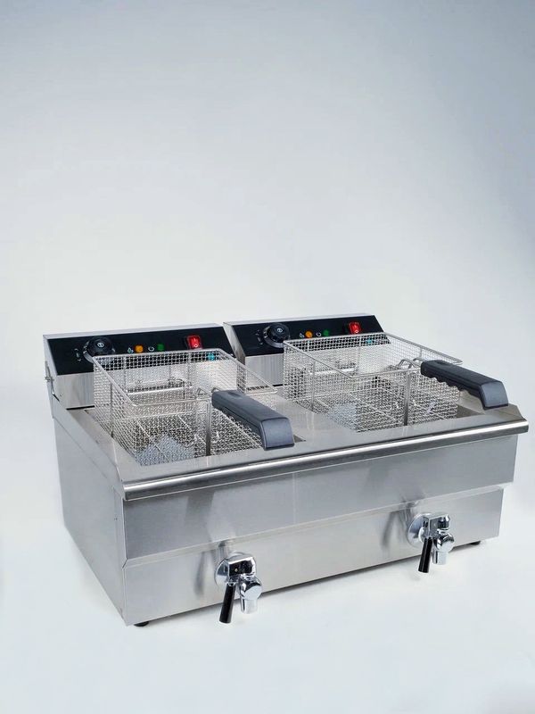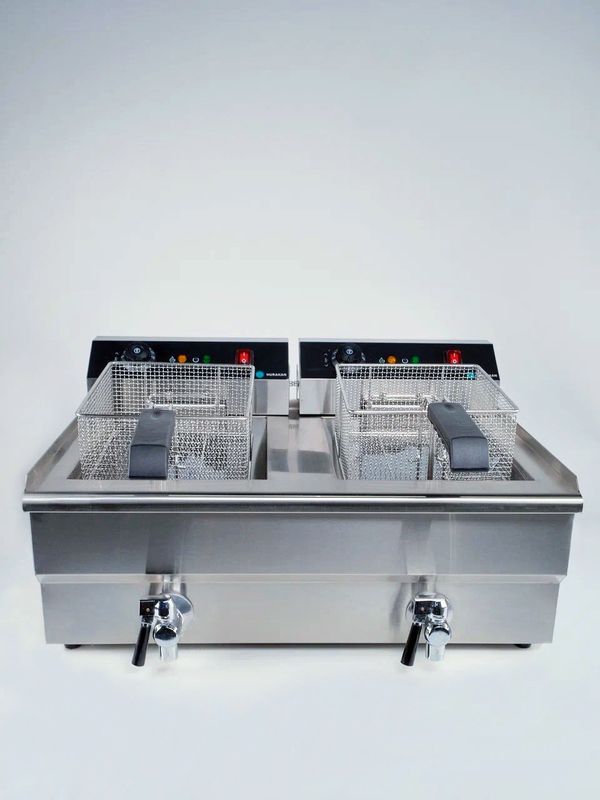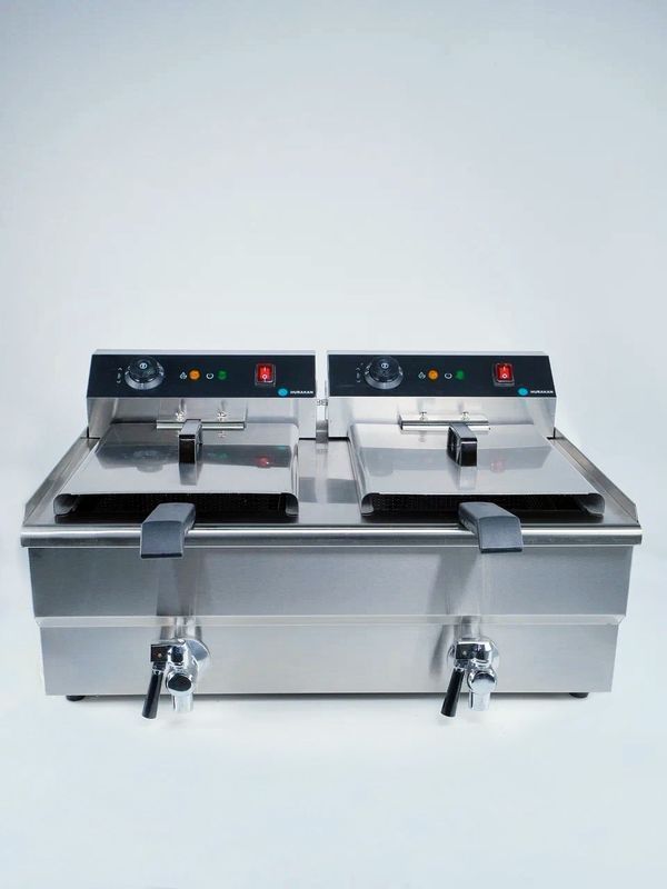 Профессиональная фритюрница HURAKAN HKN-FT1616N предназначена для обжаривания продуктов, таких как картофель, мясо, рыба, овощи и фрукты в кляре, в разогретом до определенной температуры растительном или животном масле.