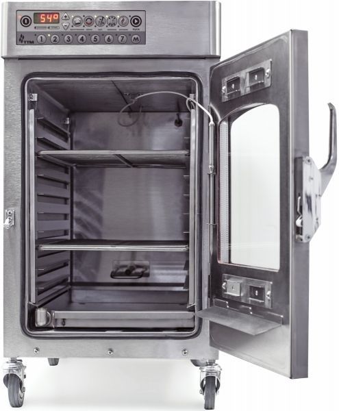 - Возможность сохранения в памяти следующих параметров: температура приготовления до 140 °С и хранения до 95 °С; время приготовления до 24 часов, время копчения до 1,5 часов, температура щупа до 95 °С