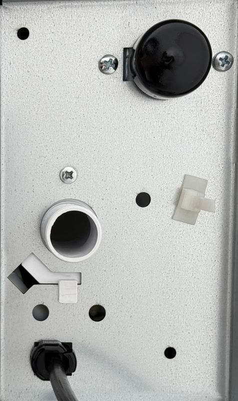 - Многофункциональная кнопка с красным индикатором (переключает в режим очистки и сигнализирует о неисправности или заполнении бункера для льда)