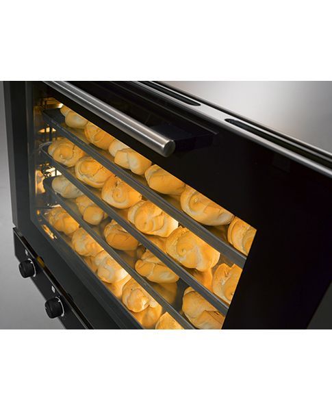 Конвекционная печь Tecnoeka EKF 464 UD серии Evolution Snack выпекает круассаны с начинкой или без нее. Это отличный помощник для всех тех, кто желает разогреть хлеб, сделав его вновь хрустящим. Эту печь используют в небольших пекарнях и кондитерских, где пространство является ценным фактором. Несмотря на компактные размеры и простоту использования, печь EKF 464 UD позволяет достигать профессиональные результаты с минимальными затратами времени и энергии благодаря функции с прямым впрыском воды для парообразования, позволяющей персонализировать любой рецепт в зависимости от нужд способа приготовления. Функция принудительного охлаждения гарантирует защиту всех электрических компонентов устройства от перегрева. Внутреннее освещение и двойное термостойкое стекло в распашной двери позволяют наблюдать за процессом приготовления продуктов без необходимости открывания дверцы.