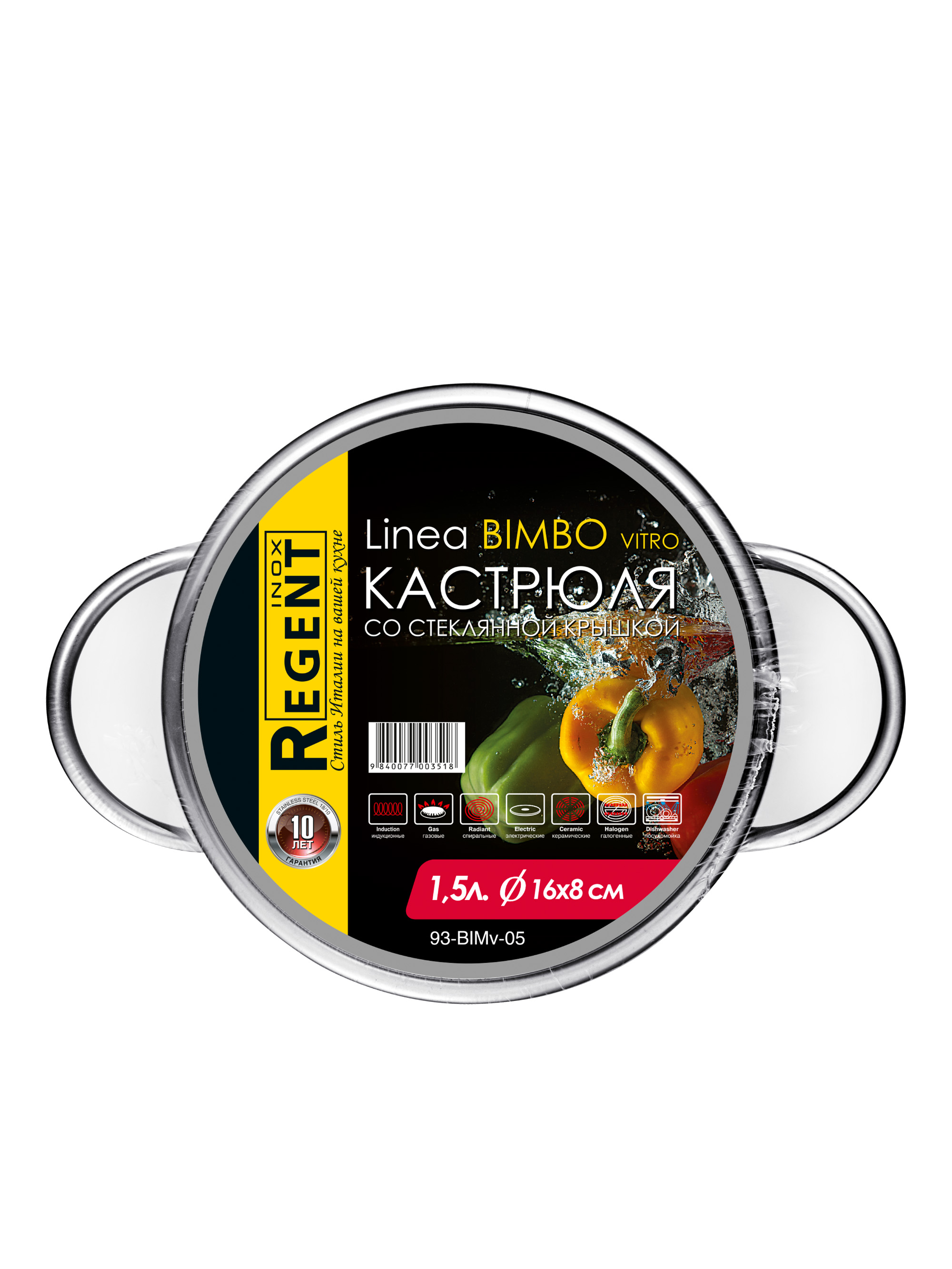 Кастрюля 1,5 л Linea BIMBO vitro; 160х80 мм Regent Inox S.r.l. |