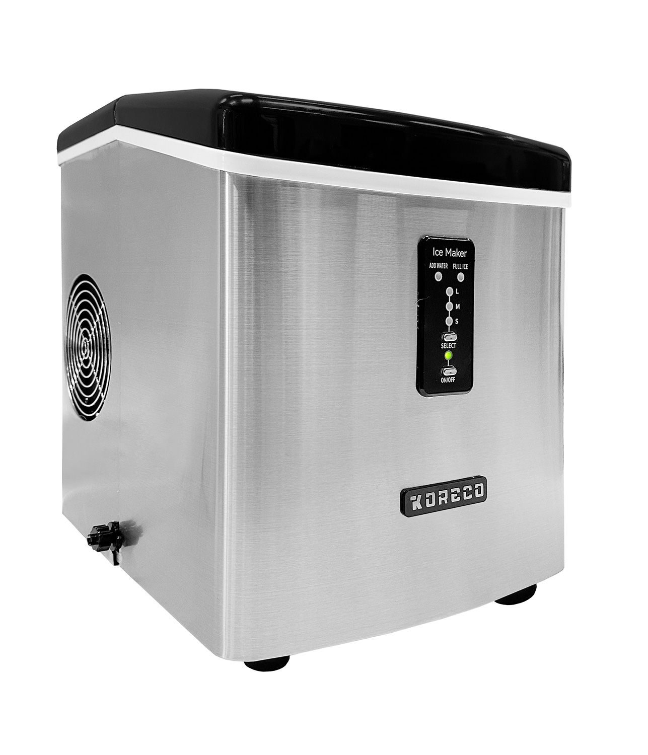 Льдогенератор для пальчикового льда, 12 кг/сут, бункер 1.1 кг, с корпусом из нержавеющей стали, заливной Koreco ZB 15 SS |
