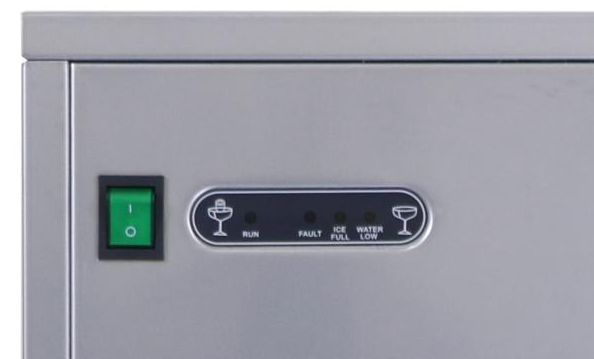 Интуитивно понятный интерфейс с индикаторами работы, заполненности бункера льдом, недостатка воды в емкости.