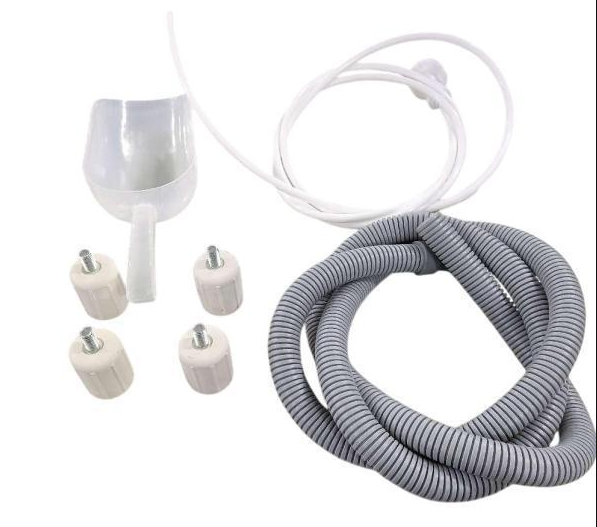 - В комплекте к льдогенератору идут лопатка, ножки, шланг подачи воды, а также сливная труба