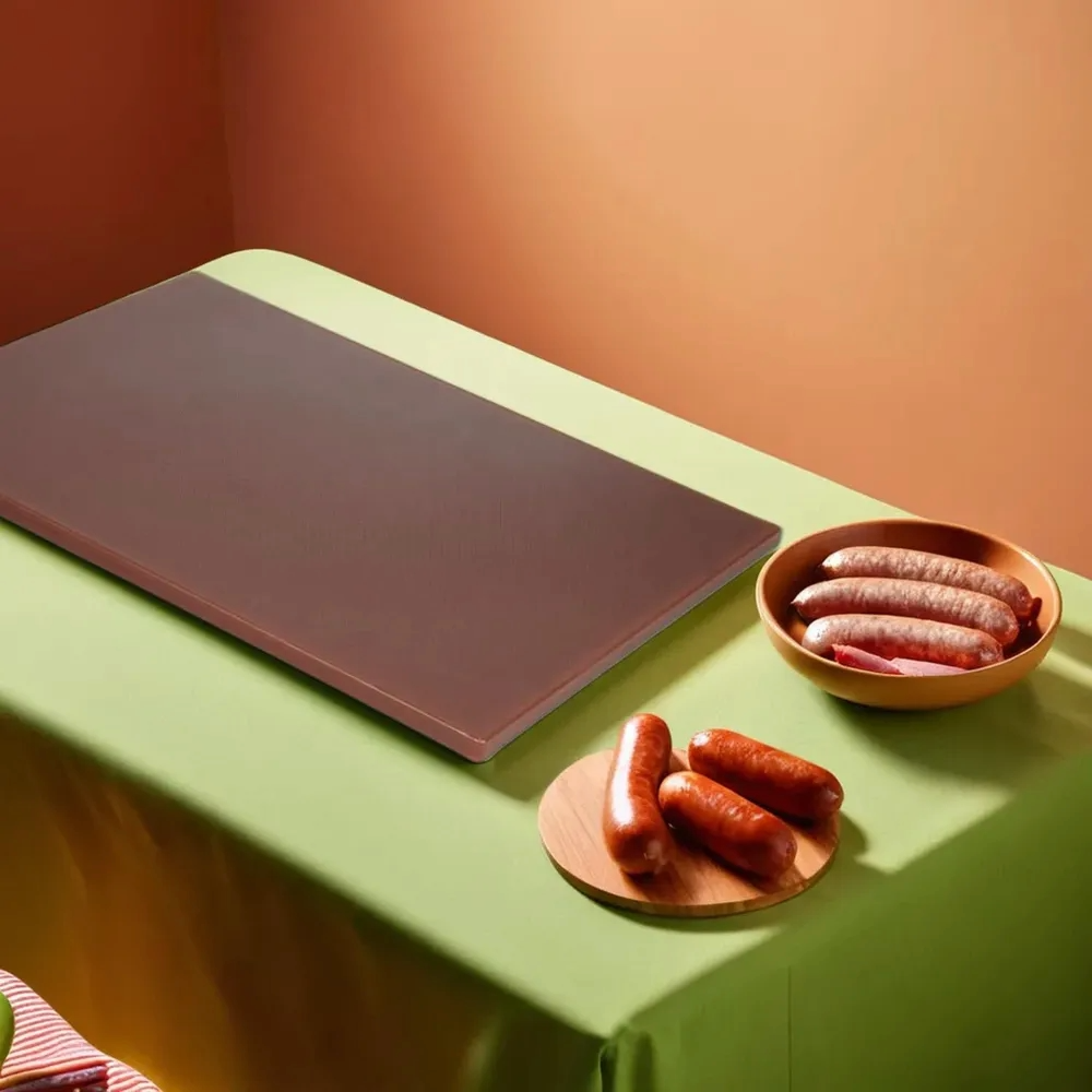 Доска разделочная пластиковая (полиэтилен) большая используется на предприятия общественного питания любого уровня. Доска разделочная профессиональная может использоваться с обеих сторон. Доска разделочная имеет устойчивость к механическим повреждениям, не впитывает запахи, легко моется. Цвет доски для нарезки подбирается в соответствии с продуктами питания: