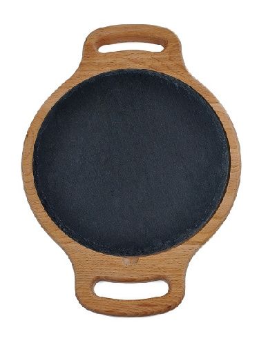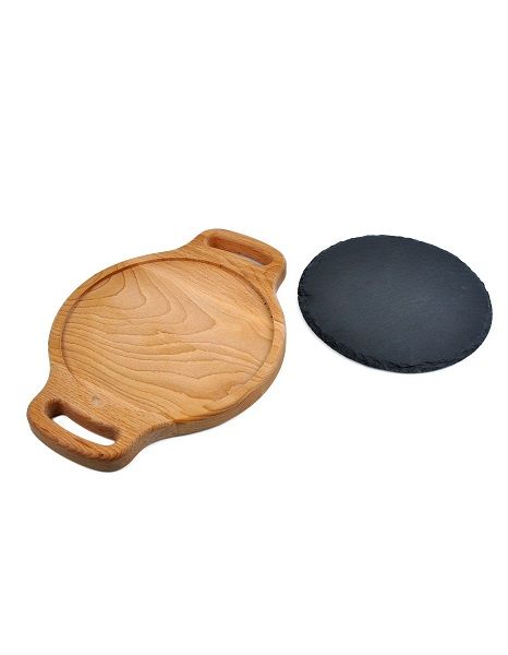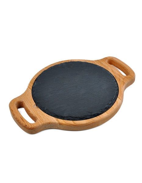 Блюдо для подачи круглое d=200 мм. h=15 мм. черное, сланец, на дерев. подставке с ручками MGprof /1/ купить в Москве, Санкт-Петербурге и Краснодаре с доставкой по выгодной цене Вы можете на сайте поставщика GranБазар.