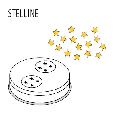 Насадка STELLINE («звездочки») для машин для пасты Fimar MPF2,5/MPF4 и PF25E/PF40E. Размер пасты 5 мм. Диаметр насадки 57 мм.