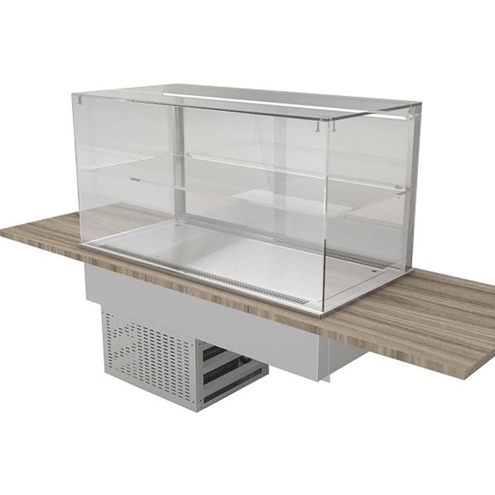 Витрина холодильная встраиваемая Gastrolux ВСВ-107/CUBE предназначена для демонстрации и раздачи готовых охлажденных блюд, десертов, кондитерских изделий и напитков. Модель оснащена камерой с 2 дверцами-купе со стороны сотрудника, полкой, поверхностью для выкладки и подсветкой. Крепление стекол осуществляется с помощью соединительных скоб. Корпус агрегата выполнен из высококачественной нержавеющей стали, купол и полка – из прочного стекла, двери-купе - из оргстекла.