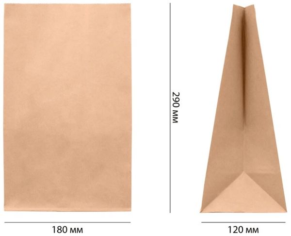 Бумажный пакет 290х180х120мм прямоугольное дно крафт. Крафт бурый, плотность - 70г/м2. Размеры: высота - 290 мм; ширина - 180 мм; глубина - 120 мм. Коробка (500 шт).