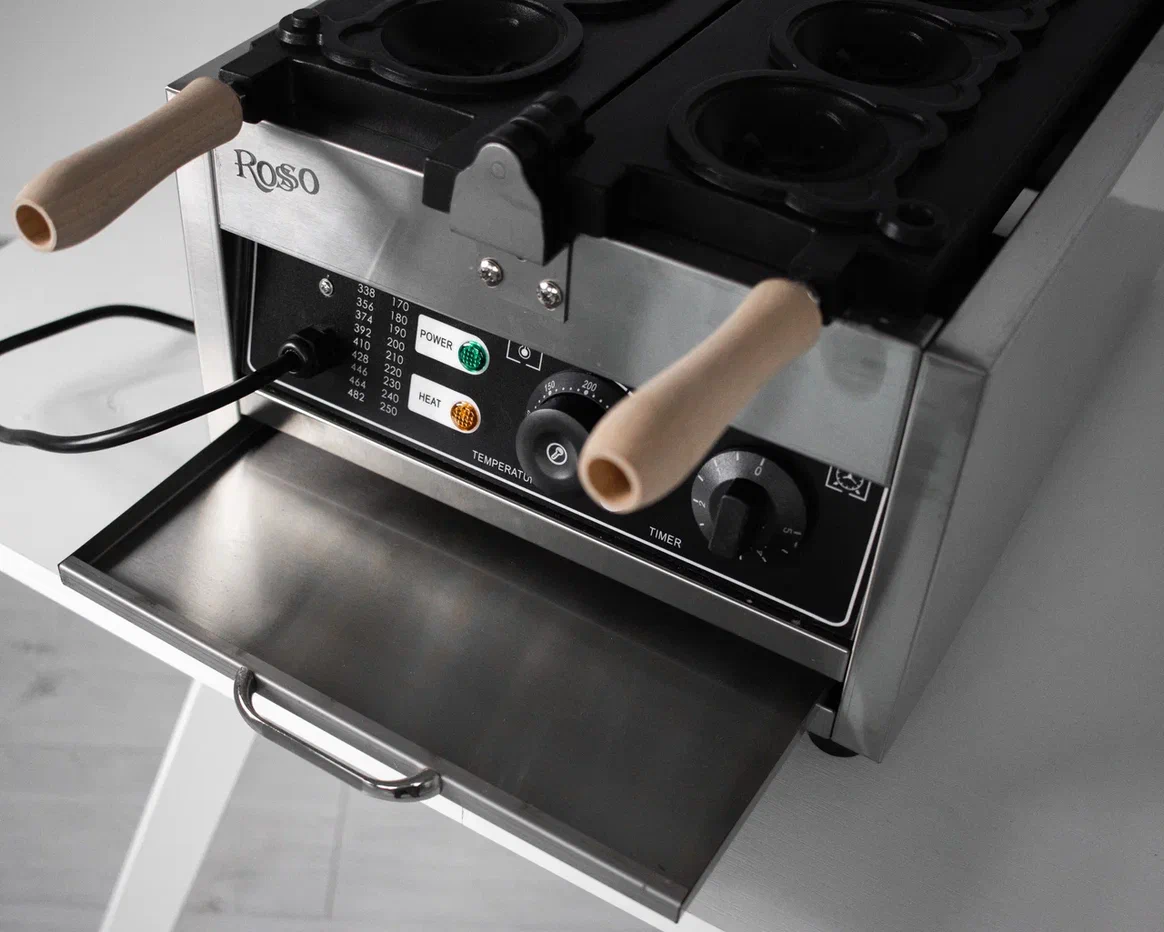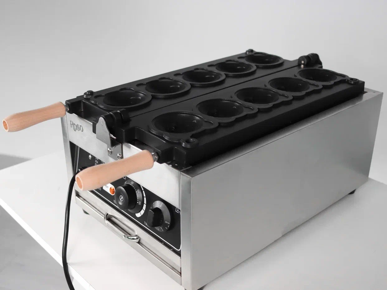 Вафельница HX-1105A — используется на предприятиях общественного питания и торговли для выпекания бельгийских вафель в форме тигровой головы. Модель оснащена электромеханическим управлением и поддоном. Позволяет одновременно выпекать до 5 изделий.