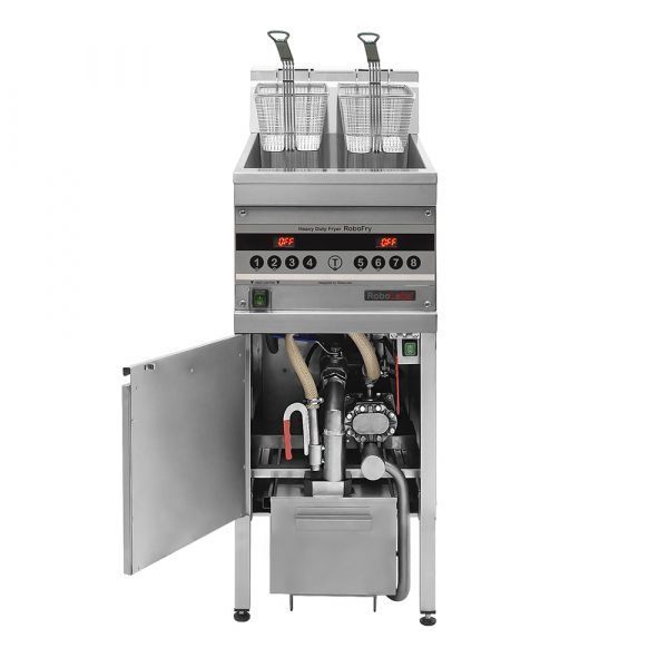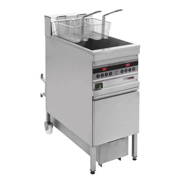 - Контроллер RoboTron позволяет максимально гибко настраивать режим работы фритюрницы, переключать фритюрницу в режим ожидания в периоды простоя и затем быстро выводить на рабочий режим. Данная опция способна значительно уменьшить интенсивность окисления масла. Кроме того, можно установить периодичность фильтрации масла и записать до 4 программ на каждую корзину.