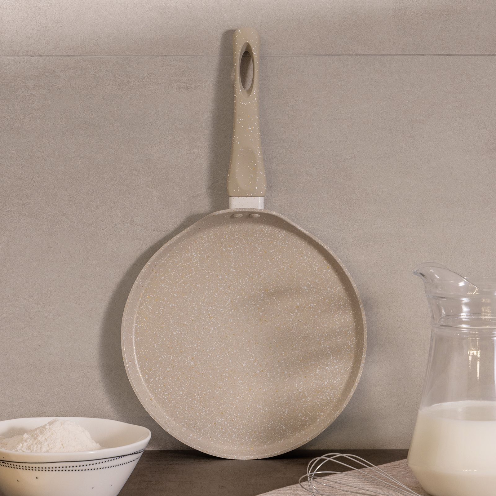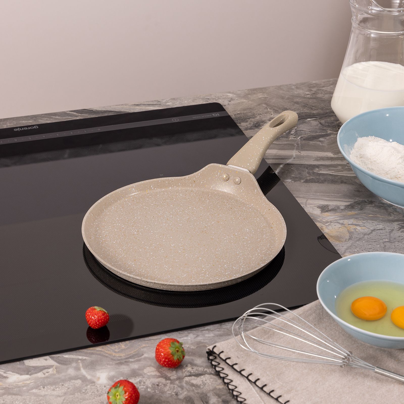 Сковорода блинная с антипригарным покрытием "Latte", 240х20 мм, индукционное дно Agness - это идеальный выбор для тех, кто ценит удобство и функциональность в посуде. Одним из главных достоинств этой сковороды является ее антипригарное покрытие, которое позволяет готовить без использования большого количества масла, а также обеспечивает равномерное распределение тепла. Благодаря этому, продукты готовятся быстрее и сохраняют свои полезные свойства. Быстрое нагревание сокращает время приготовления и сохраняет вкус и аромат продуктов. Многослойная структура покрытия обеспечивает превосходные эксплуатационные качества и увеличивает срок службы, не содержит PFOA. Эргономичная ручка из бакелита с мягким покрытием SOFT TOUCH не нагревается и не плавится, обеспечивает безопасное использование сковородки в процессе приготовления пищи. Посуда AGNESS - это современный дизайн и новейшие технологии производства. Можно мыть в посудомоечной машине в режиме Eco. Подходит для индукционных плит.