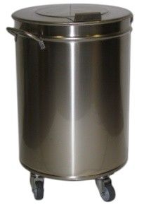 Мусорный бак без педали, с крышкой, которая для удобства снимается и вывешивается на бак сбоку. Изготовлен полностью из нержавеющей стали. D450х685 мм.