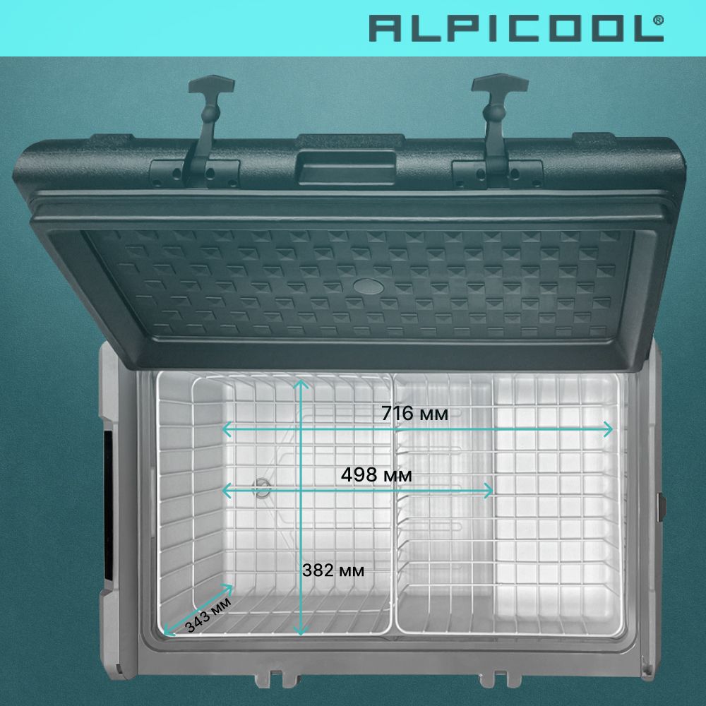 Модель укомплектована многофункциональной дверью-крышкой, дизайн которой даёт возможность использовать её в качестве стола, ставить до четырёх стаканов с напитками в специальные подстаканники. Так же в крышке автохолодильника есть специальные углубления для установки телефонов и планшетов. Любителей рыбалки несомненно порадует наличие на крышке линейки для измерения улова или других трофеев. В качестве бонуса, на корпусе встроена открывалка для бутылок. Благодаря перечисленным особенностям, холодильник идеально подходит для отдыха на природе. Крышка имеет возможность открытия с любой стороны, без специальной перестановки, достаточно освободить резиновые фиксаторы с нужной стороны. Так же её можно полностью снять. Две съёмные корзины позволят быстро загружать и вынимать продукты из холодильника. Боковые ручки обеспечивают лёгкое и удобное перемещение холодильника.