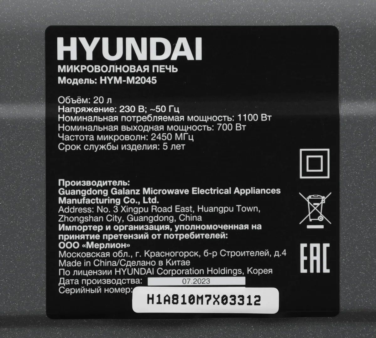 Микроволновая печь 700Вт, 20л, черный HYUNDAI HYM-M2045 купить в Москве, Санкт-Петербурге и Краснодаре с доставкой по выгодной цене Вы можете на сайте поставщика GranБазар. После оформления заказа на Печи микроволновые ХЕНДАЙ наш менеджер свяжется с Вами для уточнения времени доставки и деталей оплаты. Мы предлагаем продажу товара с гарантией от продавца и производителя HYUNDAI.
