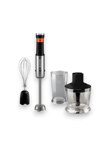 10 режимов работы позволяют максимально адаптировать скорость для обработки продуктов разной плотности, а плавное изменение скорости без прерывания работы экономит время и делает использование удобным. В комплектацию входят 3 универсальные насадки. Насадка-блендер отвечает за детское и спортивное питание, всевозможные смузи и супы-пюре. Насадка-венчик аккуратно взбивает сливки и яйца, а измельчитель позволяет быстро молоть жилистое мясо, твердый сыр, орехи. Чаша и стакан в комплекте не содержат бисфенол А и отличаются вместительным объемом – 0,5 и 0,6 л.