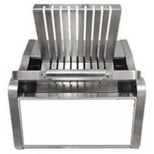 Данное оборудование нарезает роллы на ровные части. Получается 10 ровных кусочков с помощью острых лезвий.