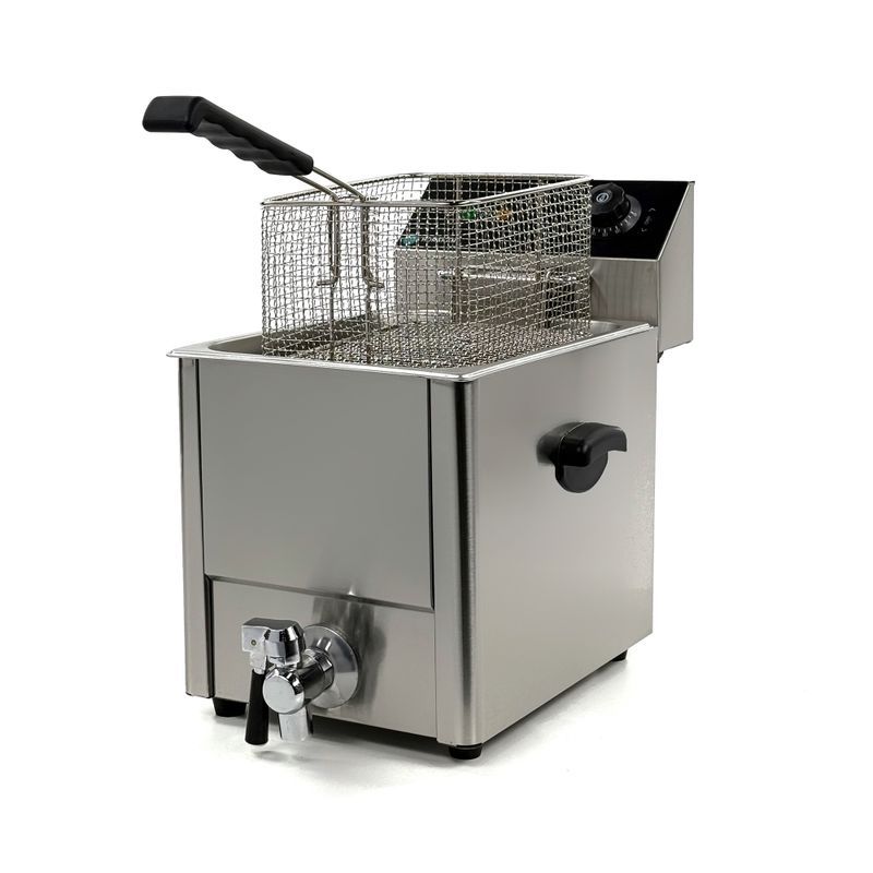 Профессиональная фритюрница HURAKAN HKN-FT8NM предназначена для обжаривания продуктов, таких как картофель, мясо, рыба, овощи и фрукты в кляре, в разогретом до определенной температуры растительном или животном масле.