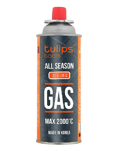 В состав газа входит изобутан 70%, бутан 25-29% и пропан 1-5%, что обеспечивает всесезонное использование (от - 20 до +35 градусов Цельсия).