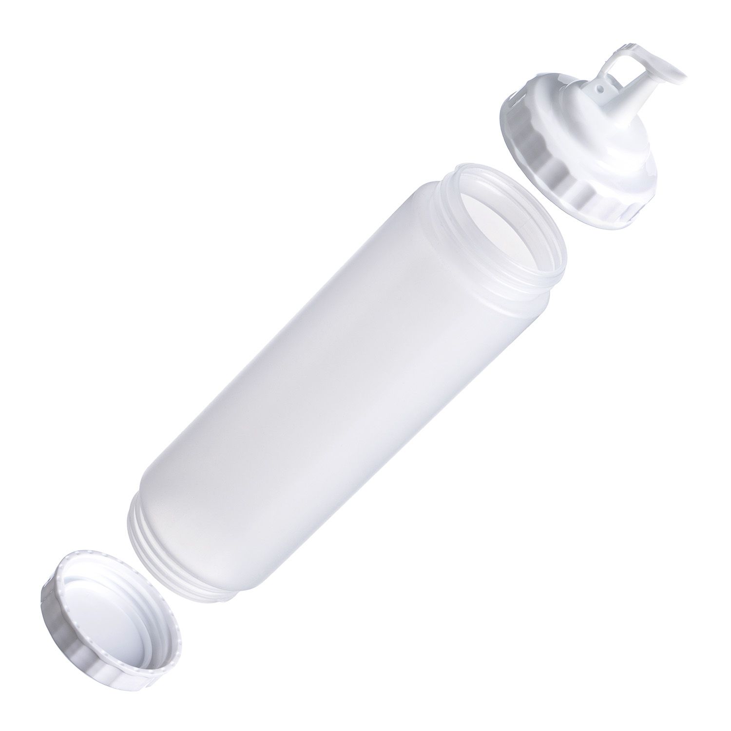 Емкость для соуса 750 мл. d=70 мм. h=270 мм. с 2 крышками, широкая прозрачная, крышки белые Gastroplast /1/96/ выполнена из прочного пищевого пластика и предназначена для профессионального использования в сегменте HoReCa. Конструкция с двумя откручивающимися крышками обеспечивает удобство наполнения, использования и ухода. Дозирующий носик с крышкой-клапаном предотвращает проливы и защищает содержимое от загрязнений. Белый цвет служит маркировкой для майонеза и других белых соусов. Прозрачный корпус облегчает визуальный контроль содержимого. Подходит для мытья в посудомоечной машине.