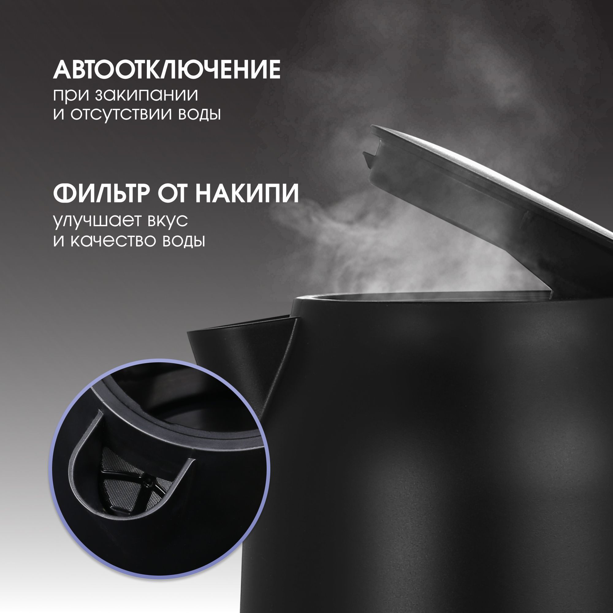 Стильный чёрный цвет чайника прекрасно впишется в любой интерьер и станет незаменимым помощником на вашей кухне.
