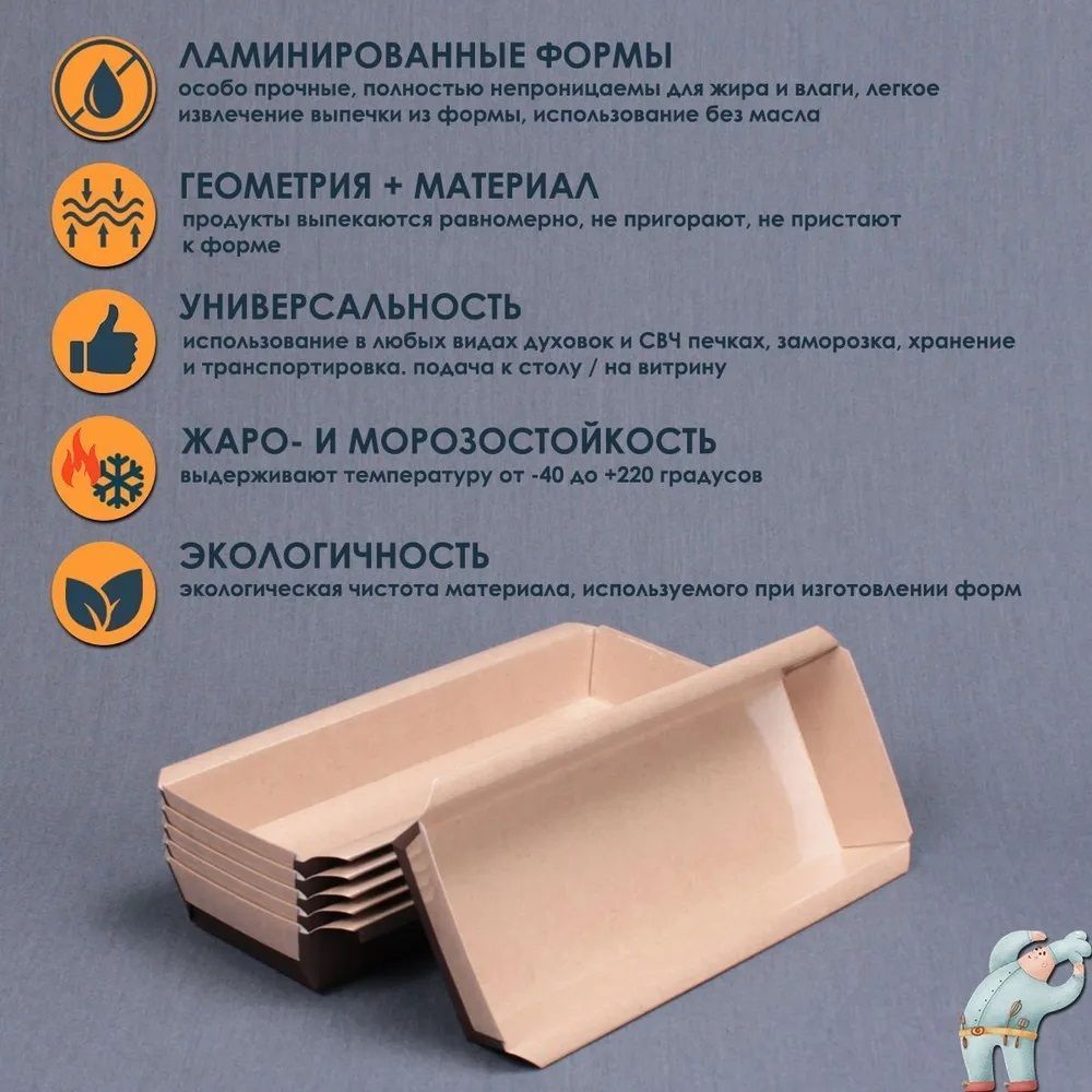- Ламинированные формы из бумаги не требуют смазывания маслом, не пропускают жиры и влагу.