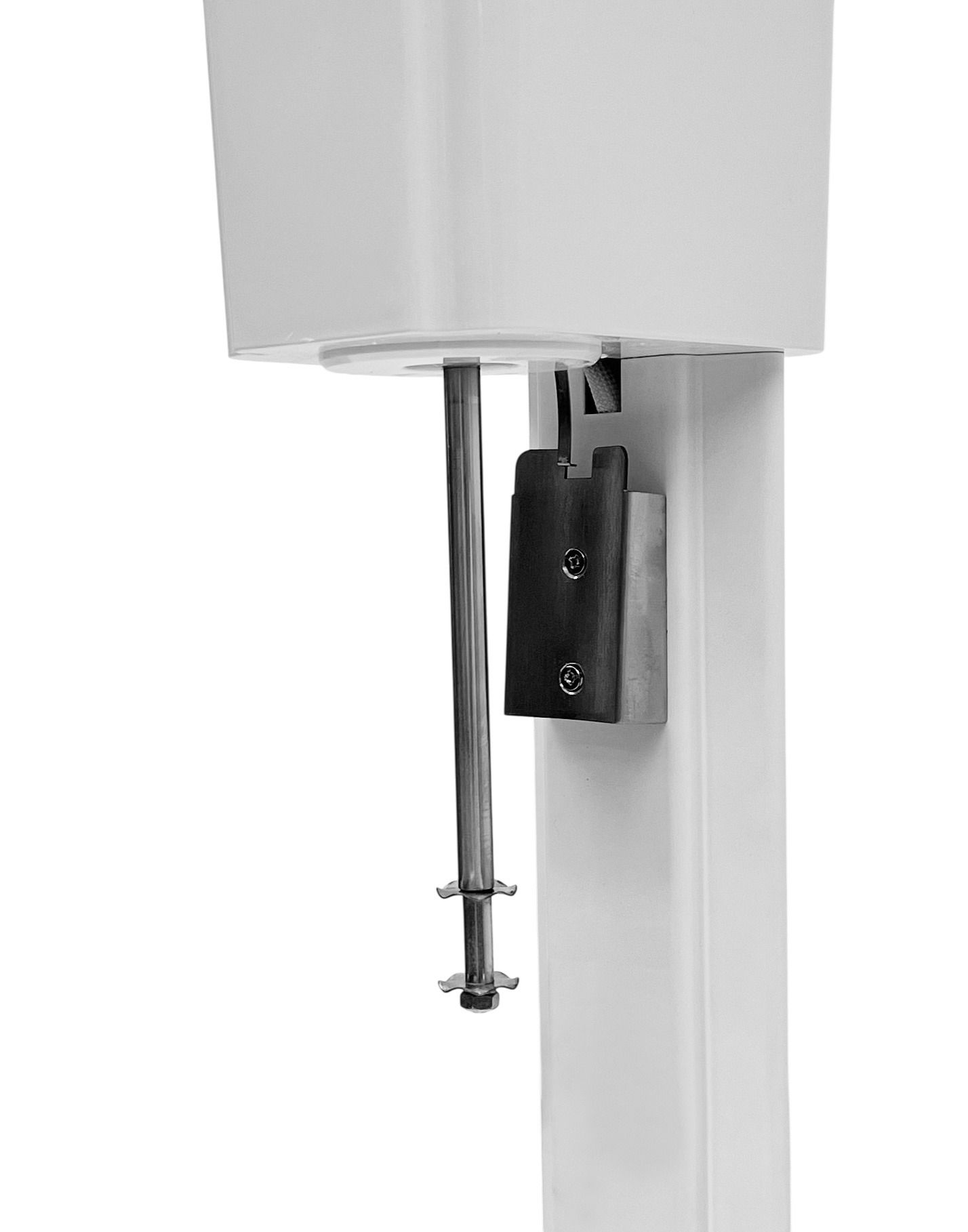 Корпус из пластика белого цвета, станина из окрашенного алюминия.