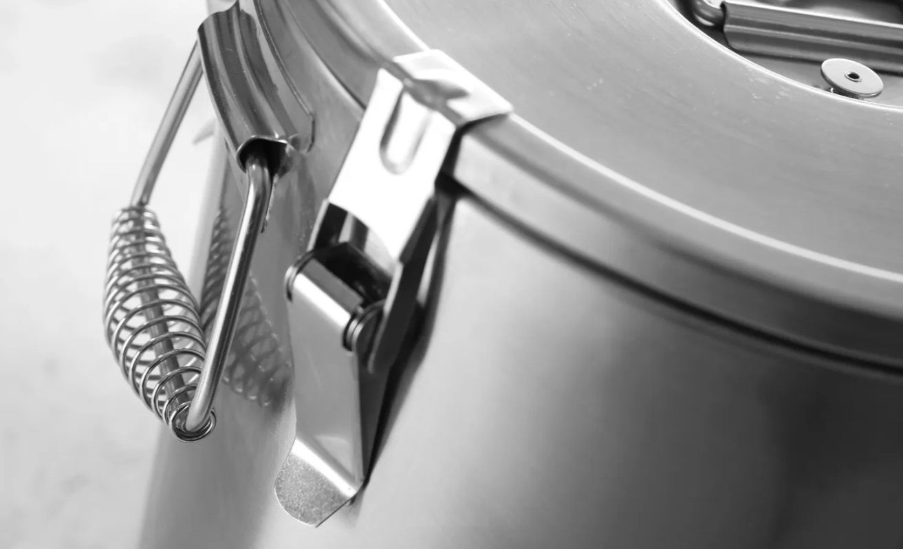 Внешний корпус термоконтейнера из нержавеющей стали Aisi201, внутренний из Aisi304.