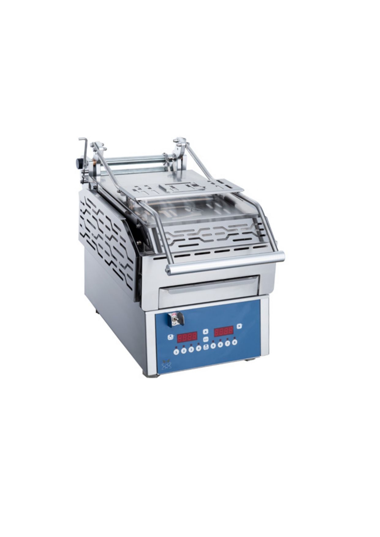 - Шарнир верхней пластины позволяет работать с продуктами различной толщины и может автоматически устанавливаться под углом 45°/85°