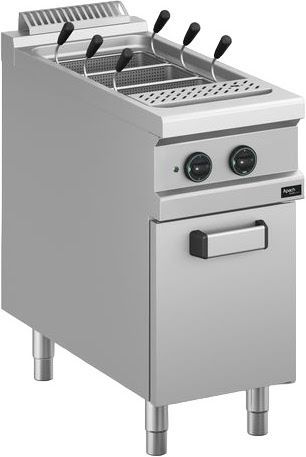 Электрическая макароноварка APACH Cook Line APPE-49P/PL 900-й серии предназначена для варки пасты, спагетти и других изделий из теста. Оснащена закрытой подставкой и регулируемыми по высоте ножками. Столешница, вентиляционная решётка и передняя панель выполнены из нержавеющей стали AISI 304 толщиной 1 мм, боковые и задние панели, дверца – из нержавеющей стали AISI 430 толщиной 1 мм, ванна – из нержавеющей стали AISI 316, нагревательные элементы – из армированной нержавеющей стали.