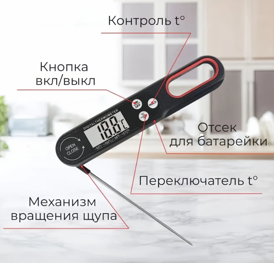 Термометр кулинарный складной с выносным щупом 105 мм Romanky |