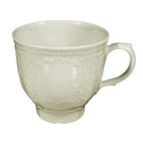 Материал фарфор, объем 220мл, цвет теплый кремовый ( ivory) . Посуда декорирована изящным рельефом.
