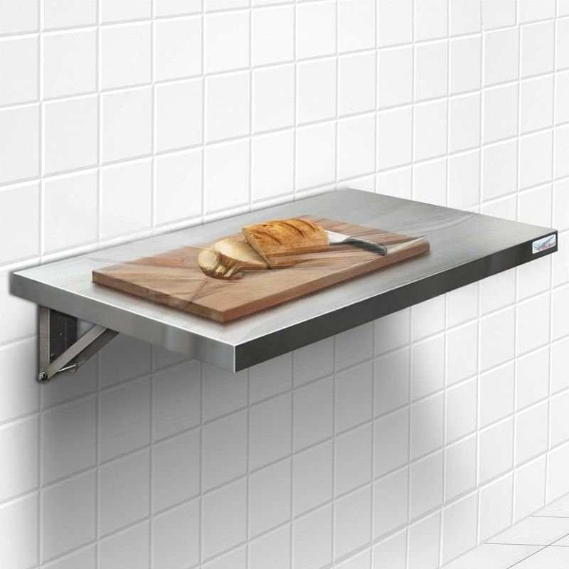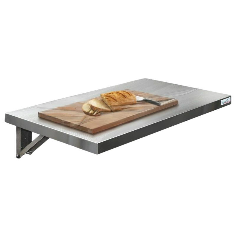 Изготовлен из пищевой нержавеющей стали. Такой стол позволяет рационально использовать рабочее пространство. Преимуществом стола является то, что он не занимает полезную площадь кухонного помещения, и его можно поместить на удобной для персонала высоте. Кроме того, стол облегчает уборку помещения. Максимальная нагрузка — 30 кг на 2 кронштейна.