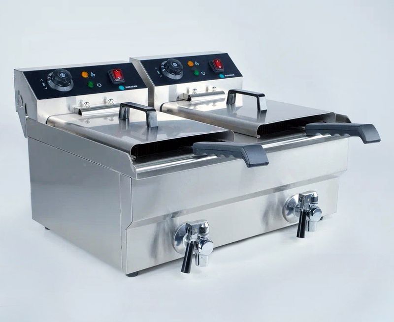 Профессиональная фритюрница HURAKAN HKN-FT1010N предназначена для обжаривания продуктов, таких как картофель, мясо, рыба, овощи и фрукты в кляре, в разогретом до определенной температуры растительном или животном масле.